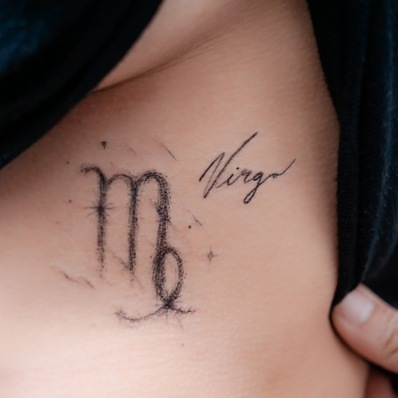 Virgo Zodiac Tattoo Lazy Duo Realistic Temporary Tattoo 處女座星座刺青紋身貼紙 Lazy Duo Tattoo